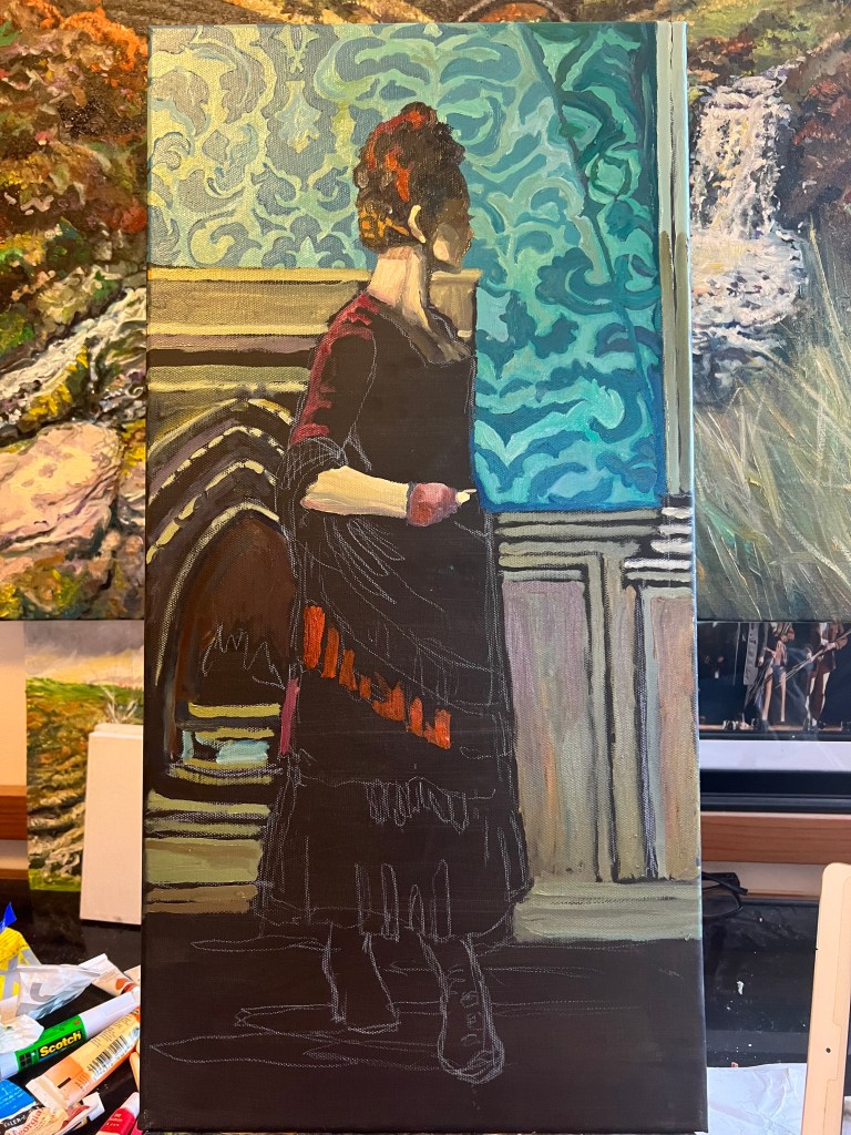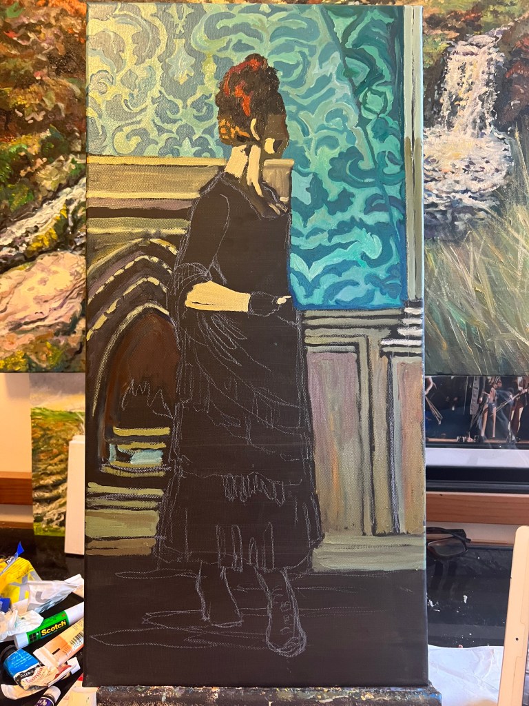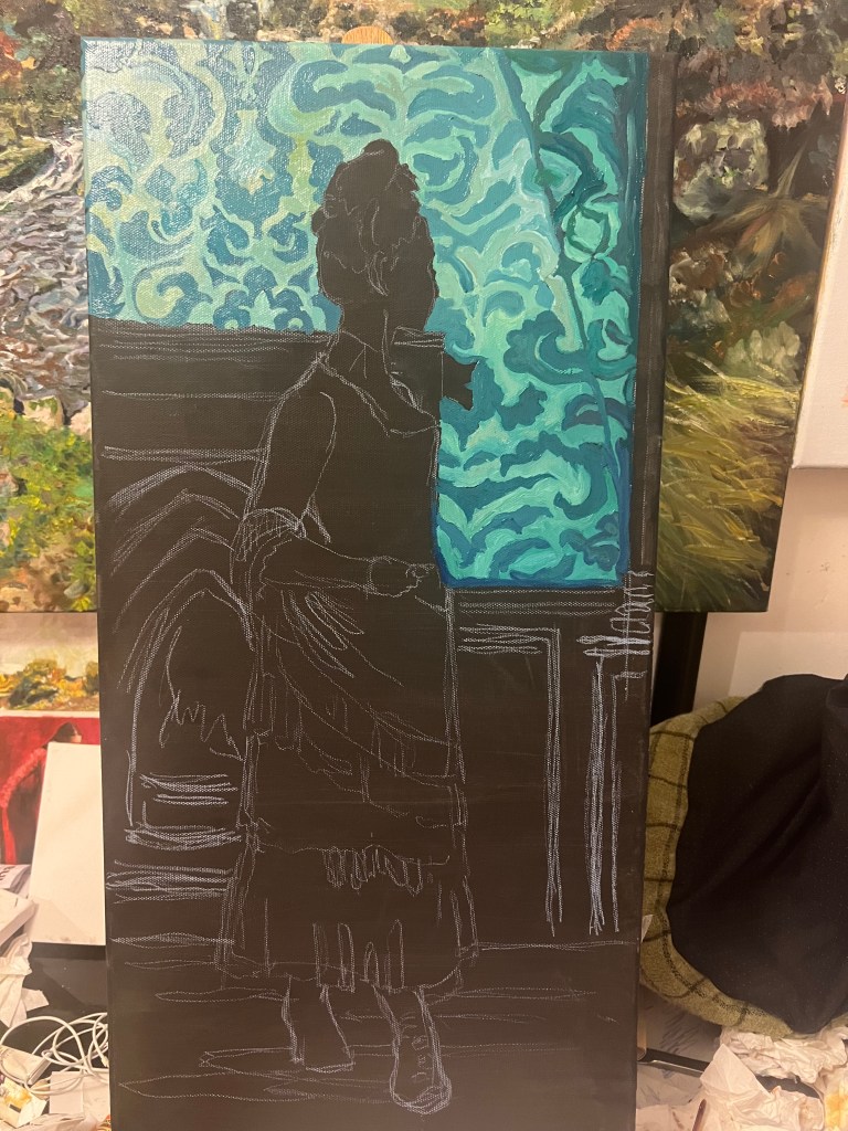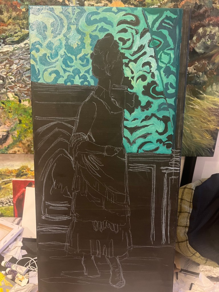 The energy that pours from the painting – she is so full of life and colour. I’ve loved her from the moment I saw her. To me. she is beauty, movement and magic. I just love her! Every time I look at her I smile. I am so delighted to have her in my home.