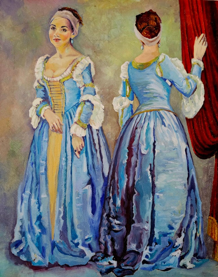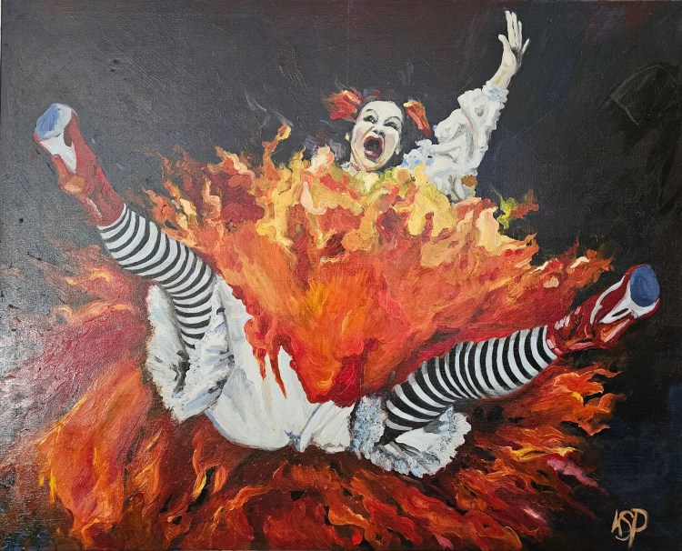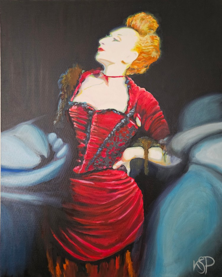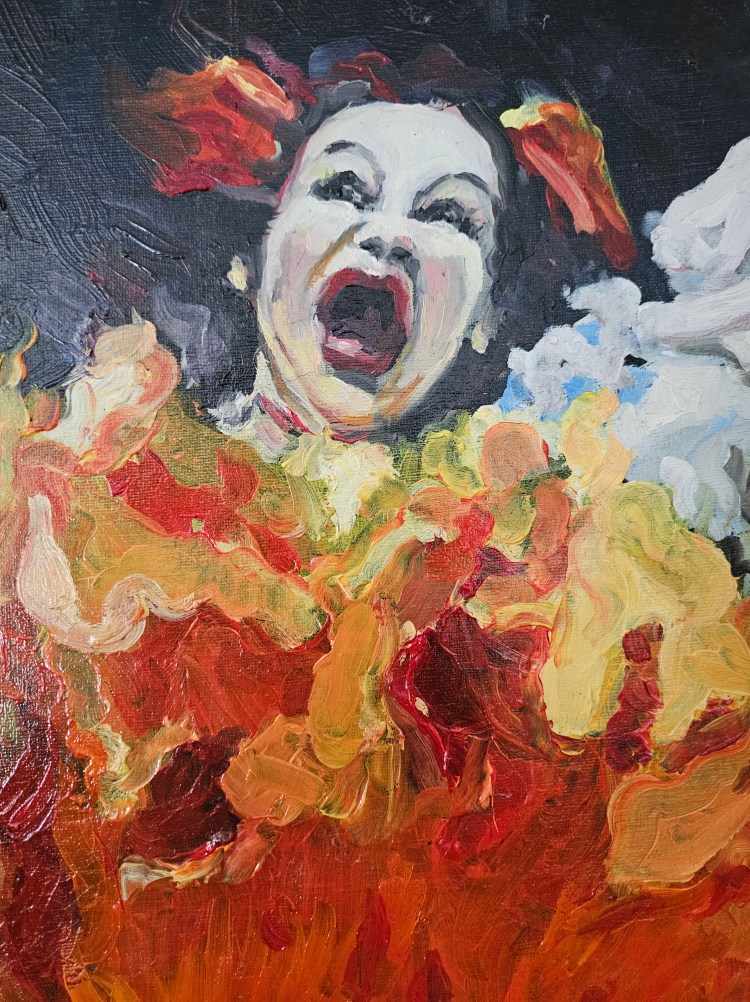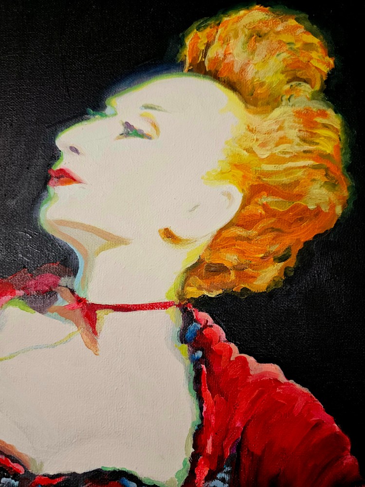 Anett Fritsch as Cupid from King Arthur, 2019 Staatsoper Berlin. Oil on canvas. £600