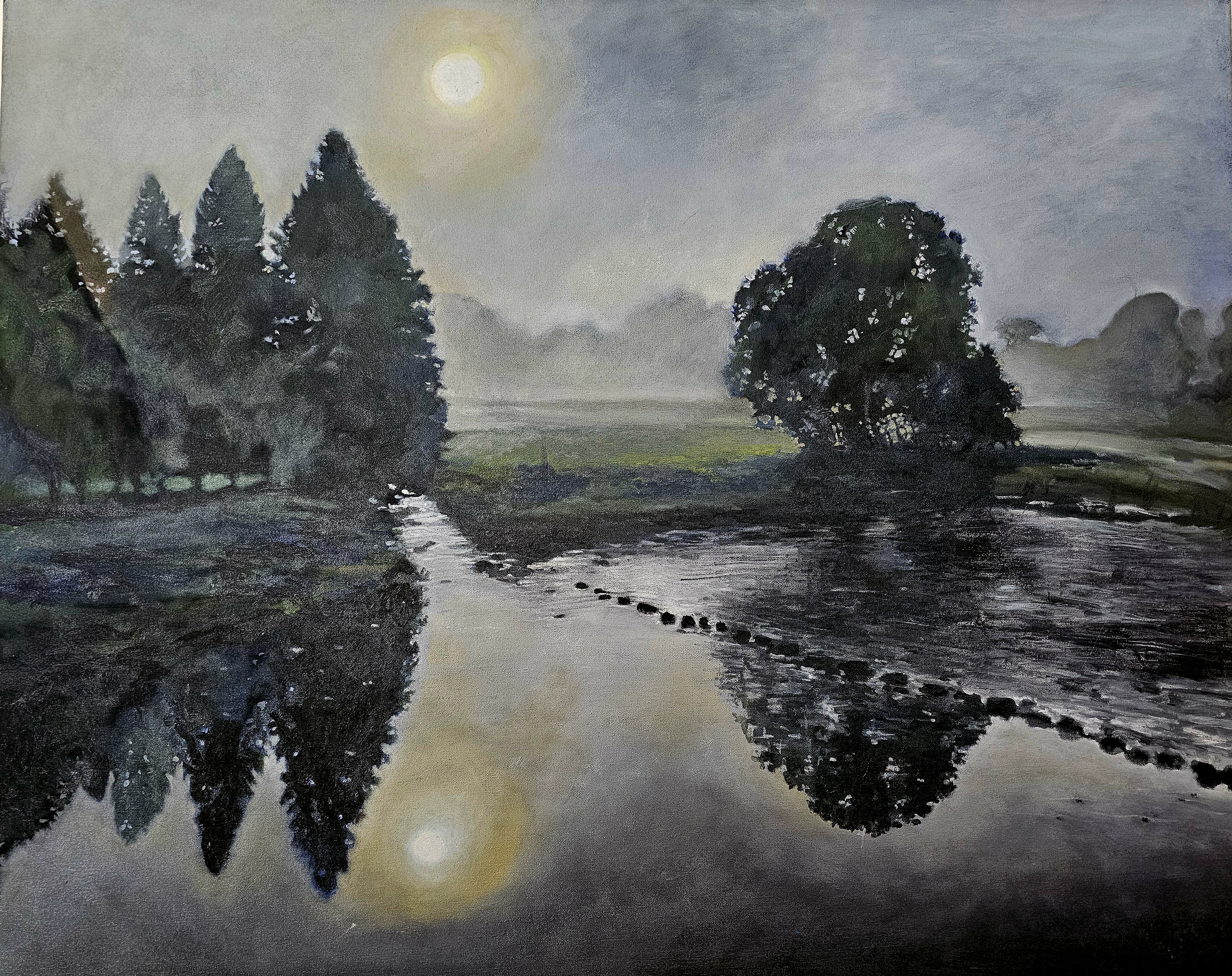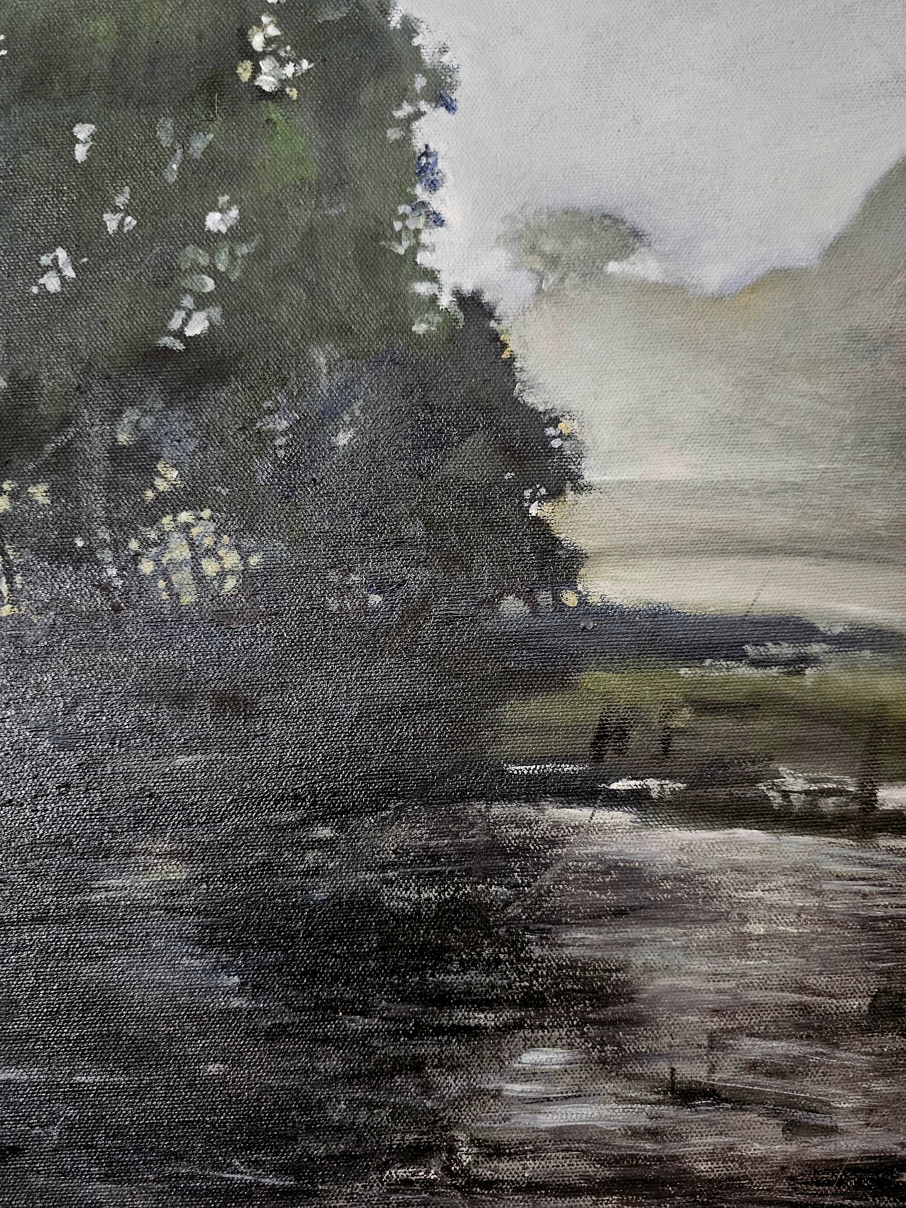 Misty Morning Walk Along the River, Grassington. Oil on canvas 100cm x 80cm £1500