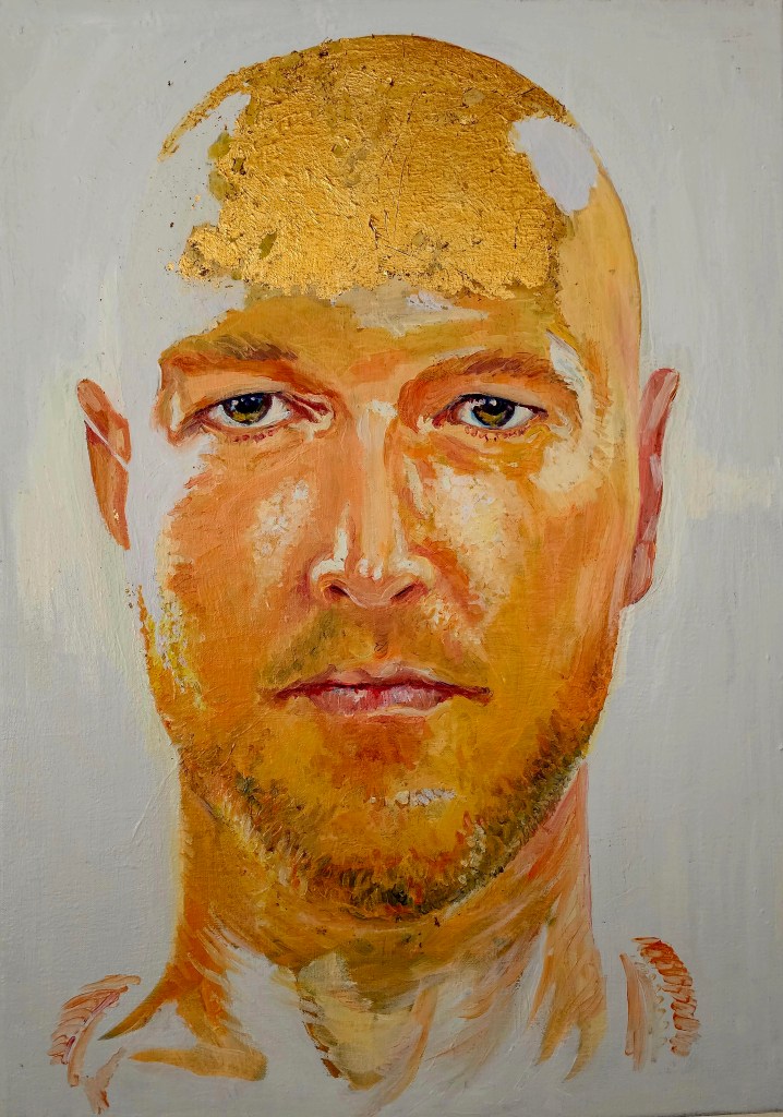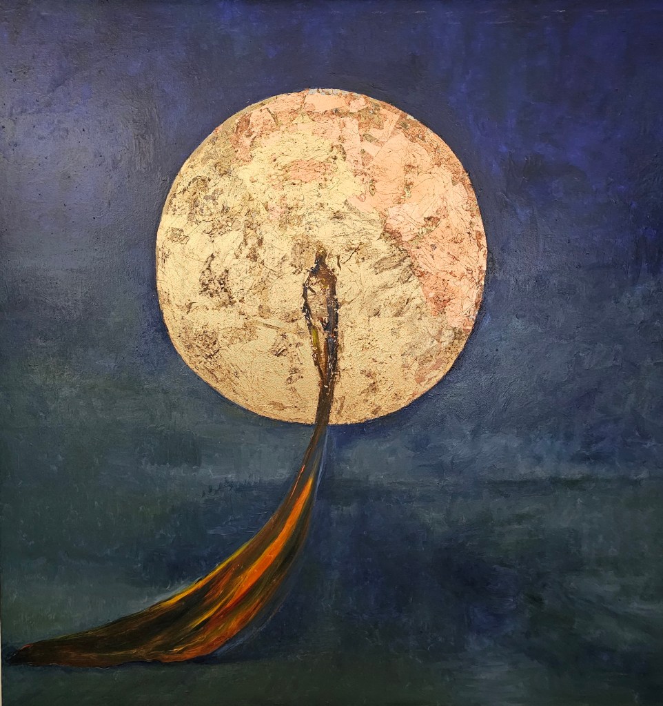 Akhenaten, The Prayer. Oil on canvas, gold & bronze leaf. 100cm x 100cm. £800
