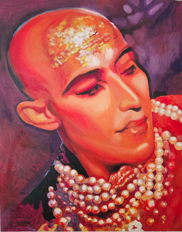 Anthony Roth Constanzo as Akhenaten, ENO, LA Opera, Metropolitan Opera New York. Oil on canvas. 60cm x 90cm. £1000