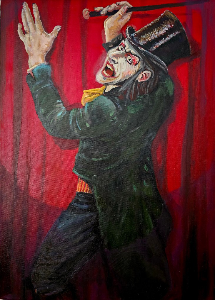 Julian Bleach as the compere, Shockheaded Peter. Oil on canvas. 51cm x 71cm, 8cm deep. £400