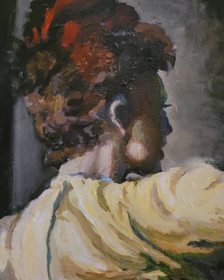 Jenny detail. Oil on canvas 23cm x 30cm £200